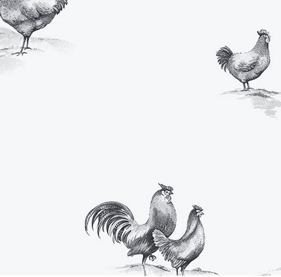 Black Rooster Toile On White Wallpaper Farmhouse Decor Etsy