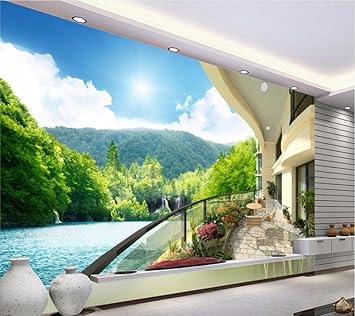 Custom Photo Wallpaper 3d Stereoscopic Space Balcony Lake Scenery