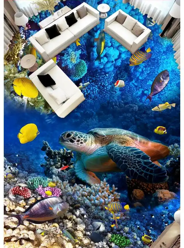 3 D Pvc Flooring Custom Photo Wallpaper Wall Sticker Sea Turtle Tropical Fish Home Decor 3d Wall Murals Wallpaper For Walls 3 D Mural Wallpaper For Walls 3d Wall