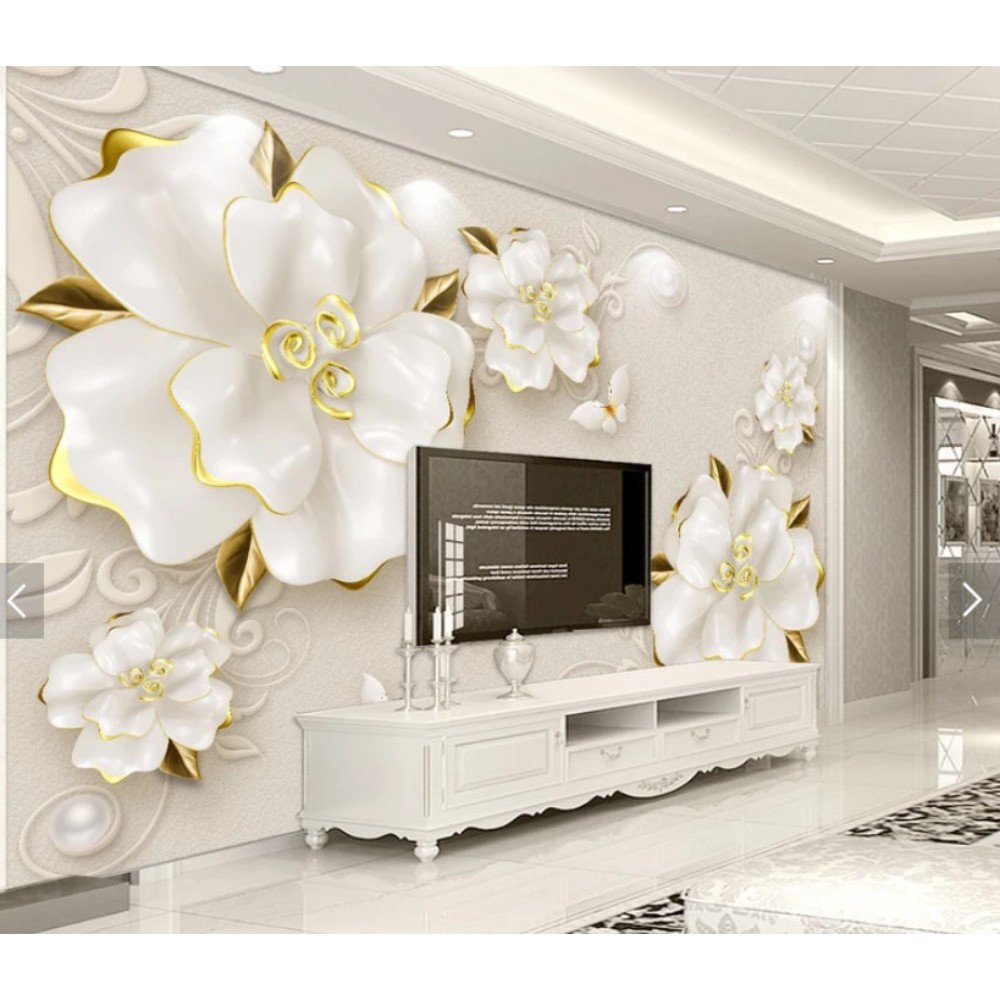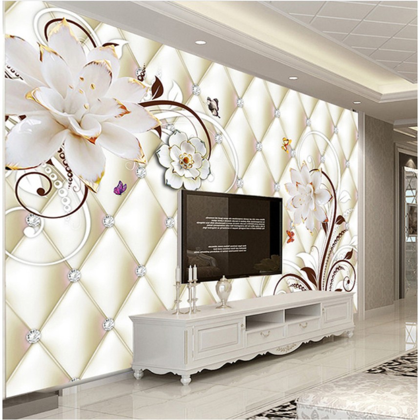3d White Flower Jewelry Living Room Tv Background Wall Painting