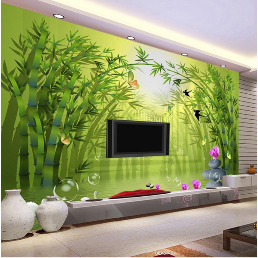3d Green Bamboo Forest Background Mural Straw Texture Wallpaper