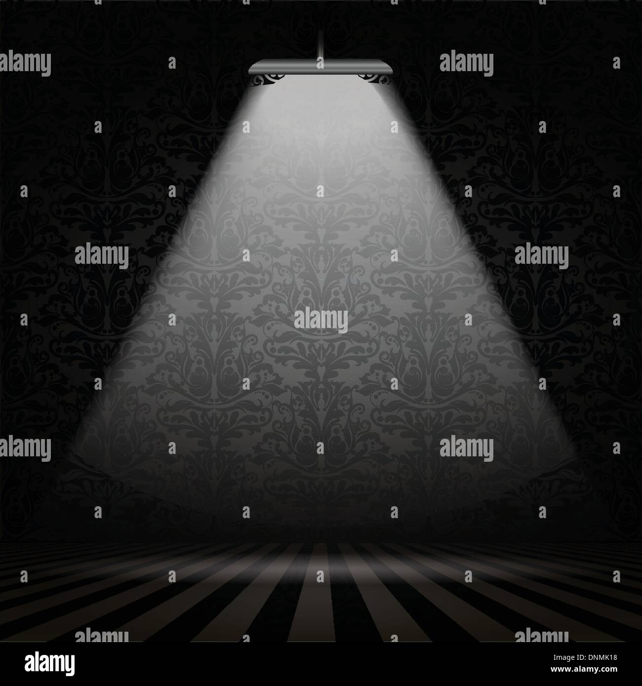 Dark Interior With Damask Wallpaper And Spotlight Stock Vector