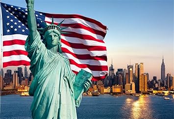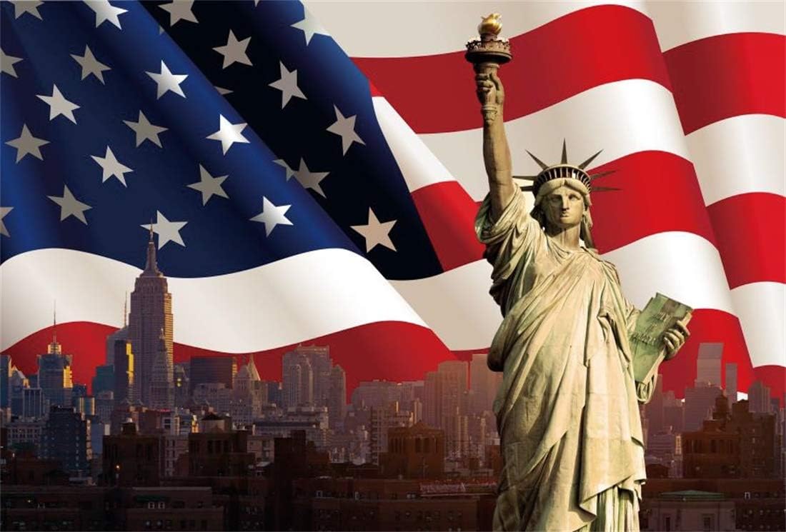 Amazon Com Yeele 7x5ft America Flag Background For Photography Statue Of Liberty Independence Day Stars And Stripes The 4th Of July Celebration City Building Photo Backdrop Studio Props Wallpaper Camera