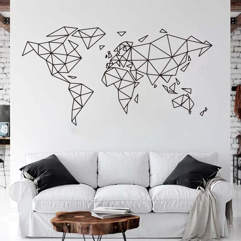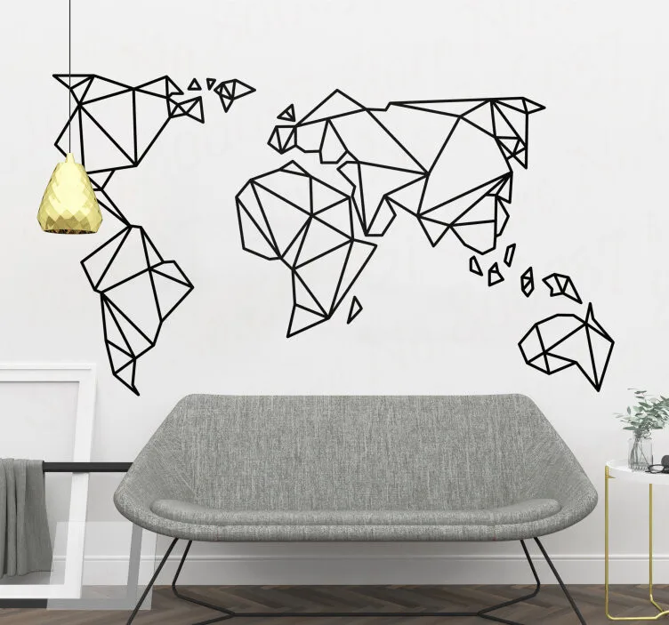 Large Geometric World Map Wall Sticker Office Classroom Geometric