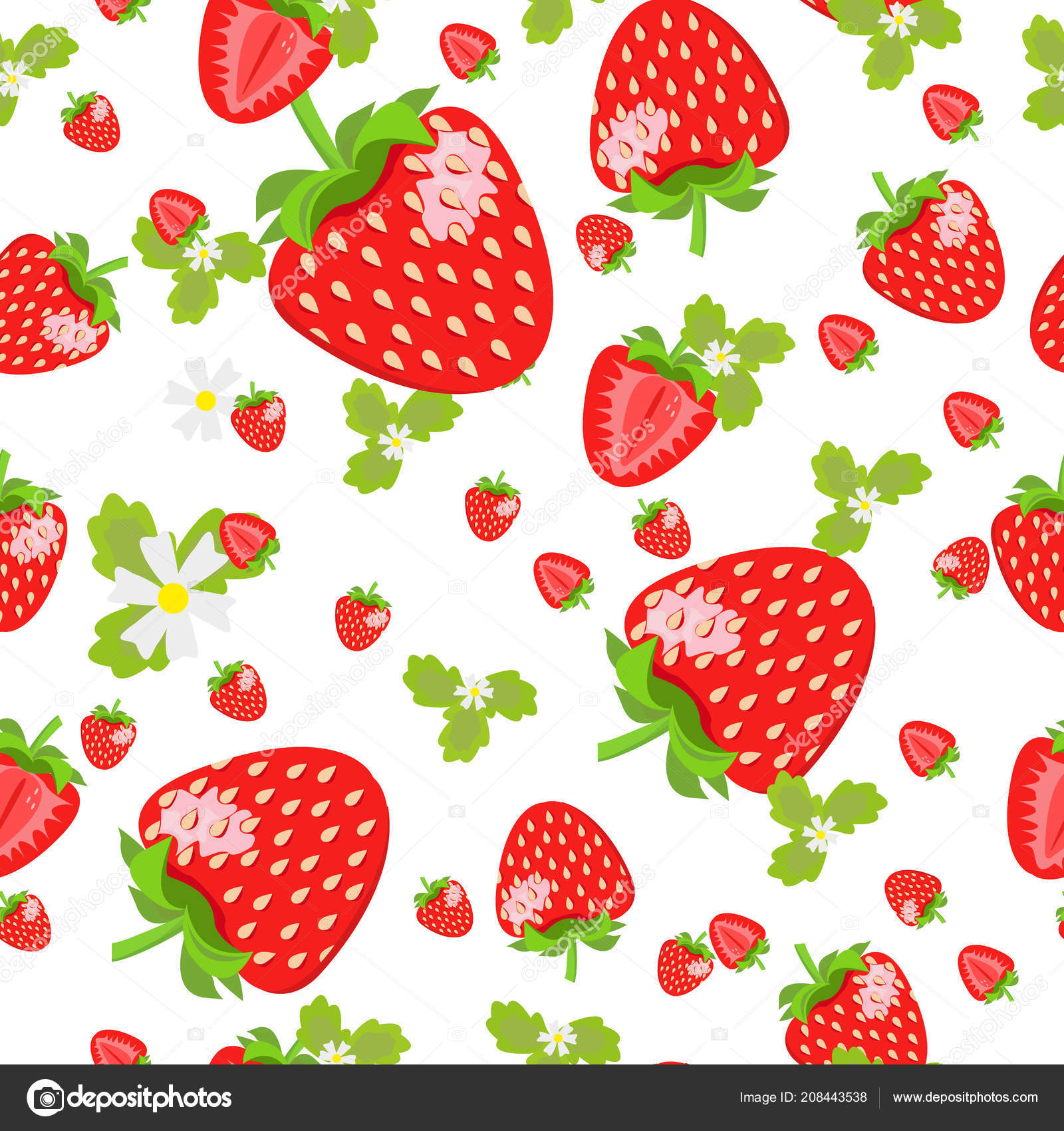 Seamless Pattern With Strawberry Vector Illustration Wallpaper