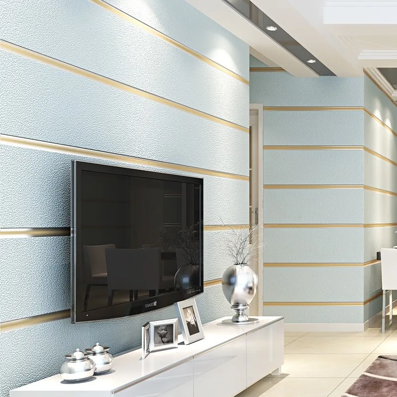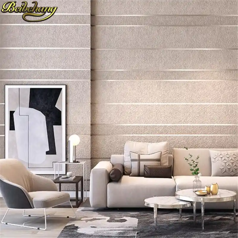 Horizontal Stripes Wallpaper For Walls 3d Suede Non Woven Fabric