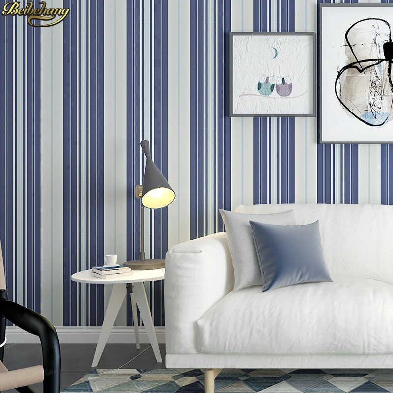 Beibehang Simple Mediterranean 3d Blue Horizontal Stripes