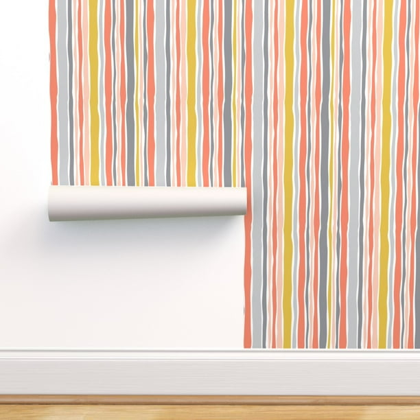 Peel And Stick Removable Wallpaper Stripe Vertical Coral Stripes