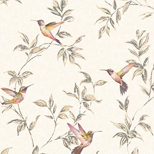 Birds Wallpaper Bird Glitter Effect Sparkle Trees Leaves Beige