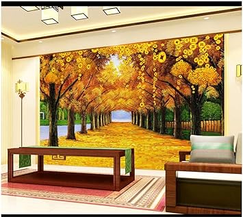 3d Wallpaper Mural Wall Paste Silk Cloth Golden Tree Gold Avenue