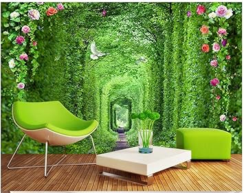 3d Wallpaper Mural Wall Paste Silk Cloth Green Plant Promenade Tv