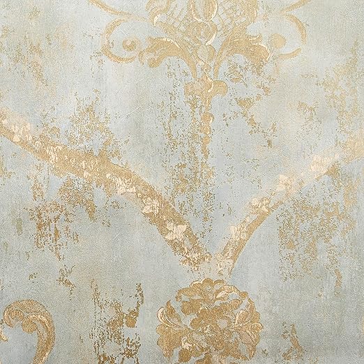 Wallpaper Gold Regal Damask On Aqua Textured Background Amazon Com