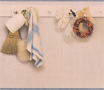 Bathroom Tools Hanging On The Wall Wide Wallpaper Border Retro