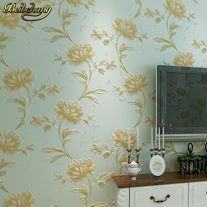 Beibehang Romantic Pastoral 3d Carving Large Flowers Non Woven