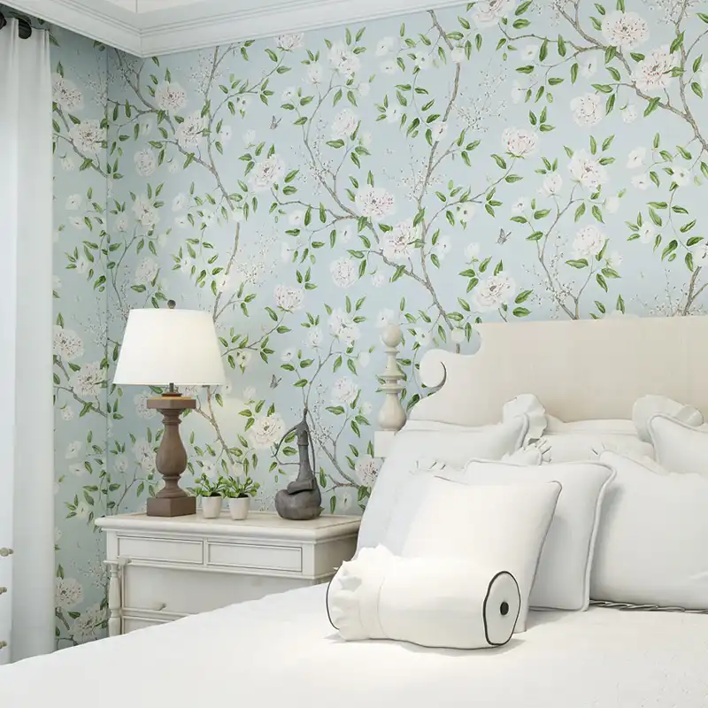 2020 Beautiful Large Flowers Wallpaper Fresh Light Blue Bedroom