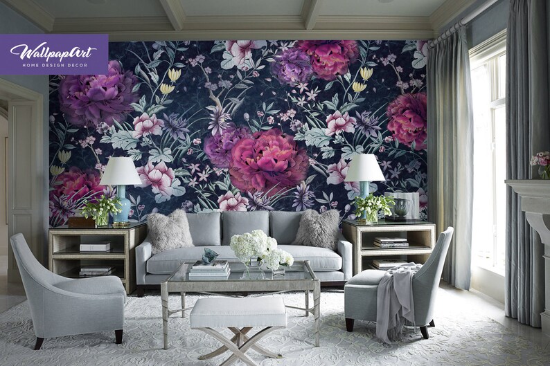 Bouquet Of Peonies Removable Wallpaper Peel And Stick Etsy
