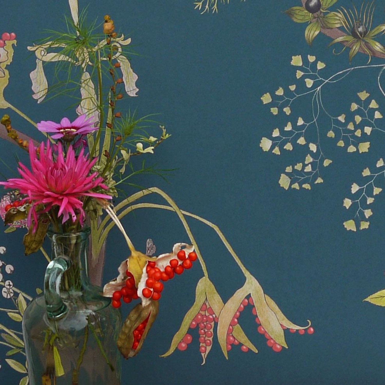 Vines Of Pomona By Cole Son Teal Viridian Denim Wallpaper Wallpaper Direct