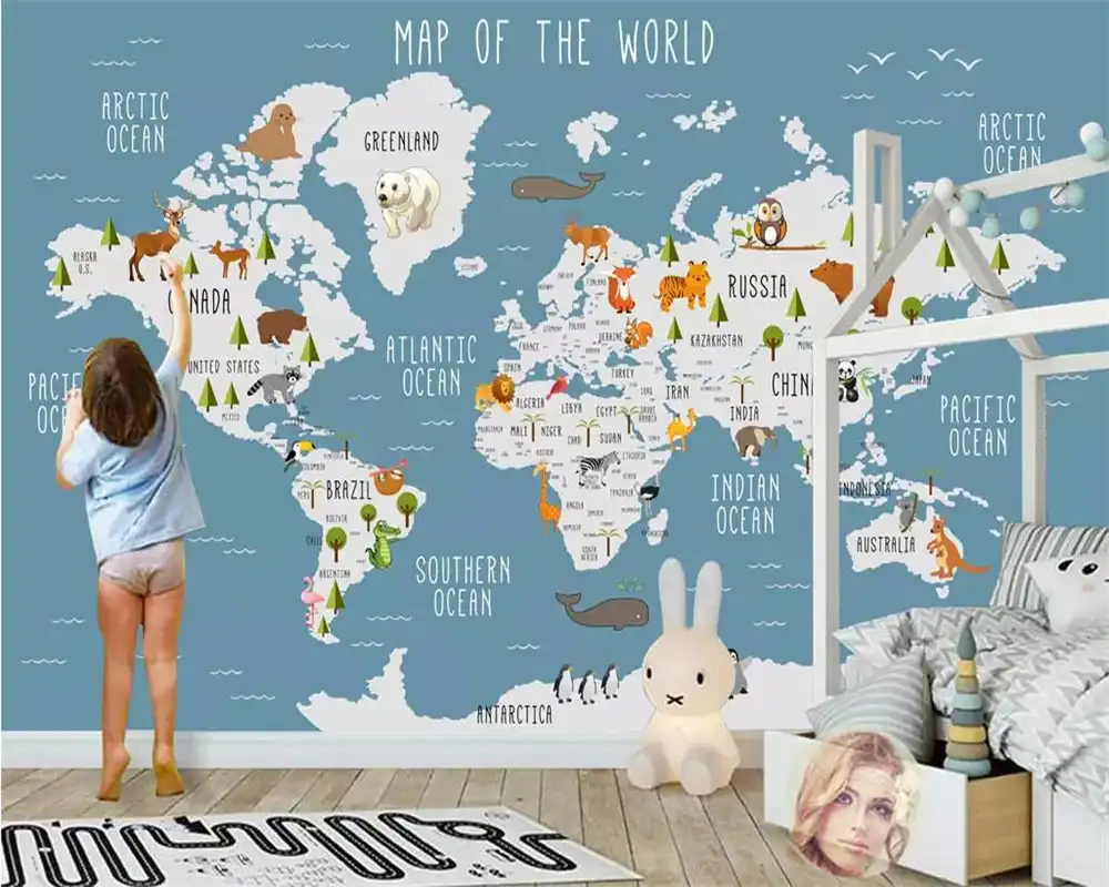 Beibehang Wallpaper Photo Cartoon World Map Children S Room