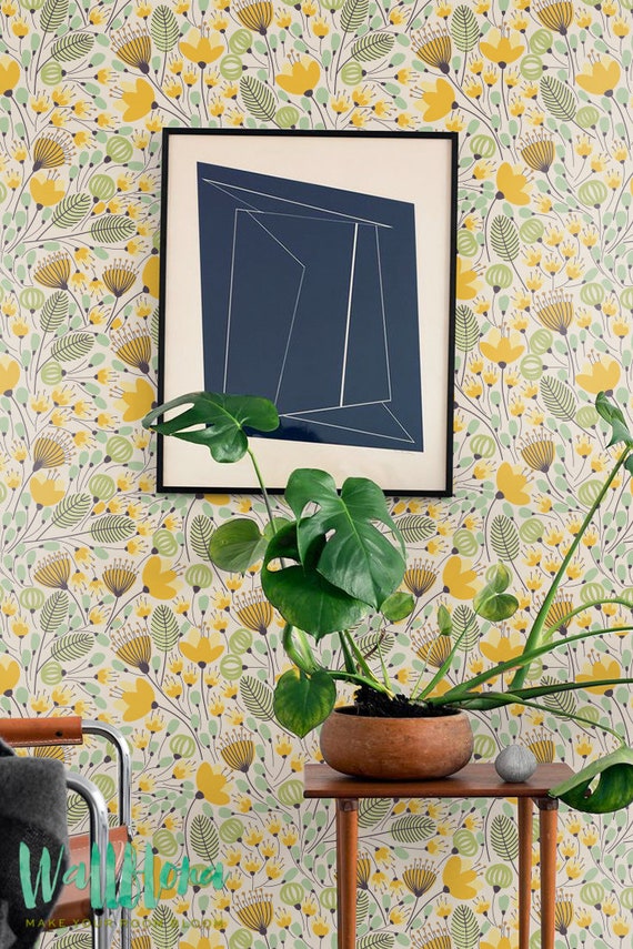 Wallpaper With Yellow Flowers And Botanical Prints Floral Etsy