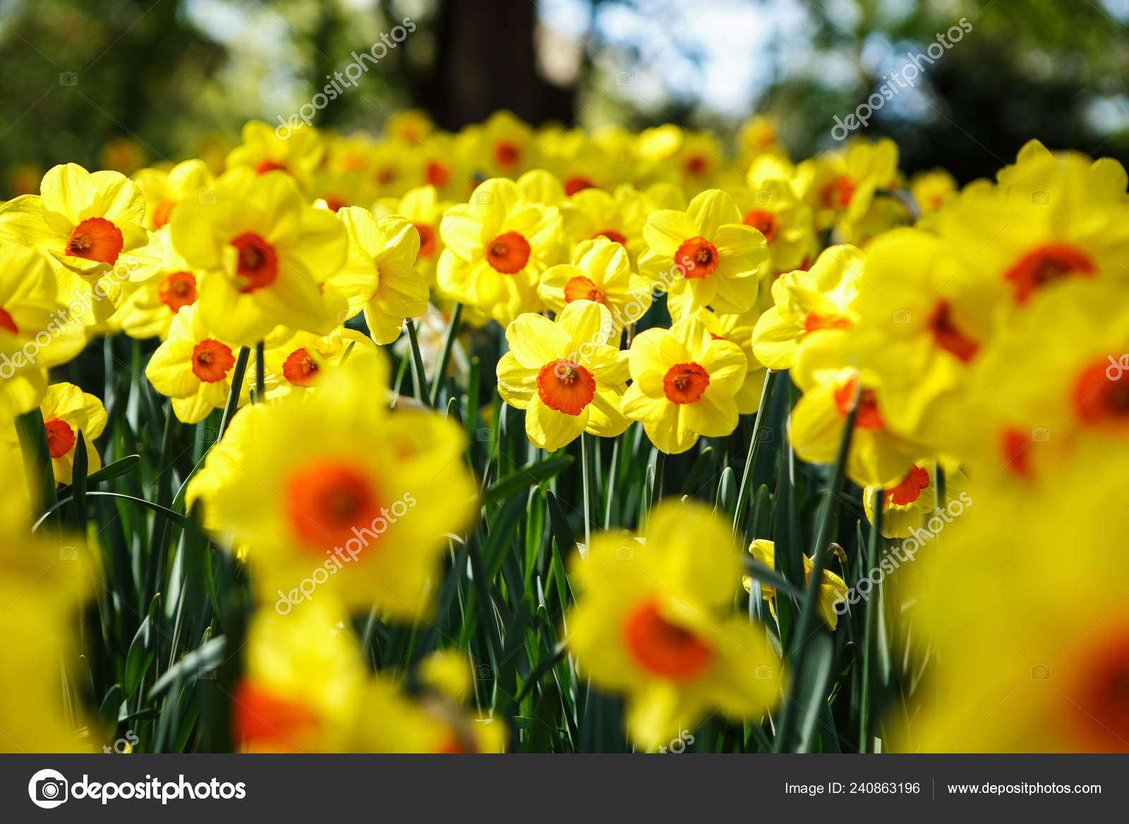 Nature Spring Background With Yellow Flowers Daffodils Stock Image
