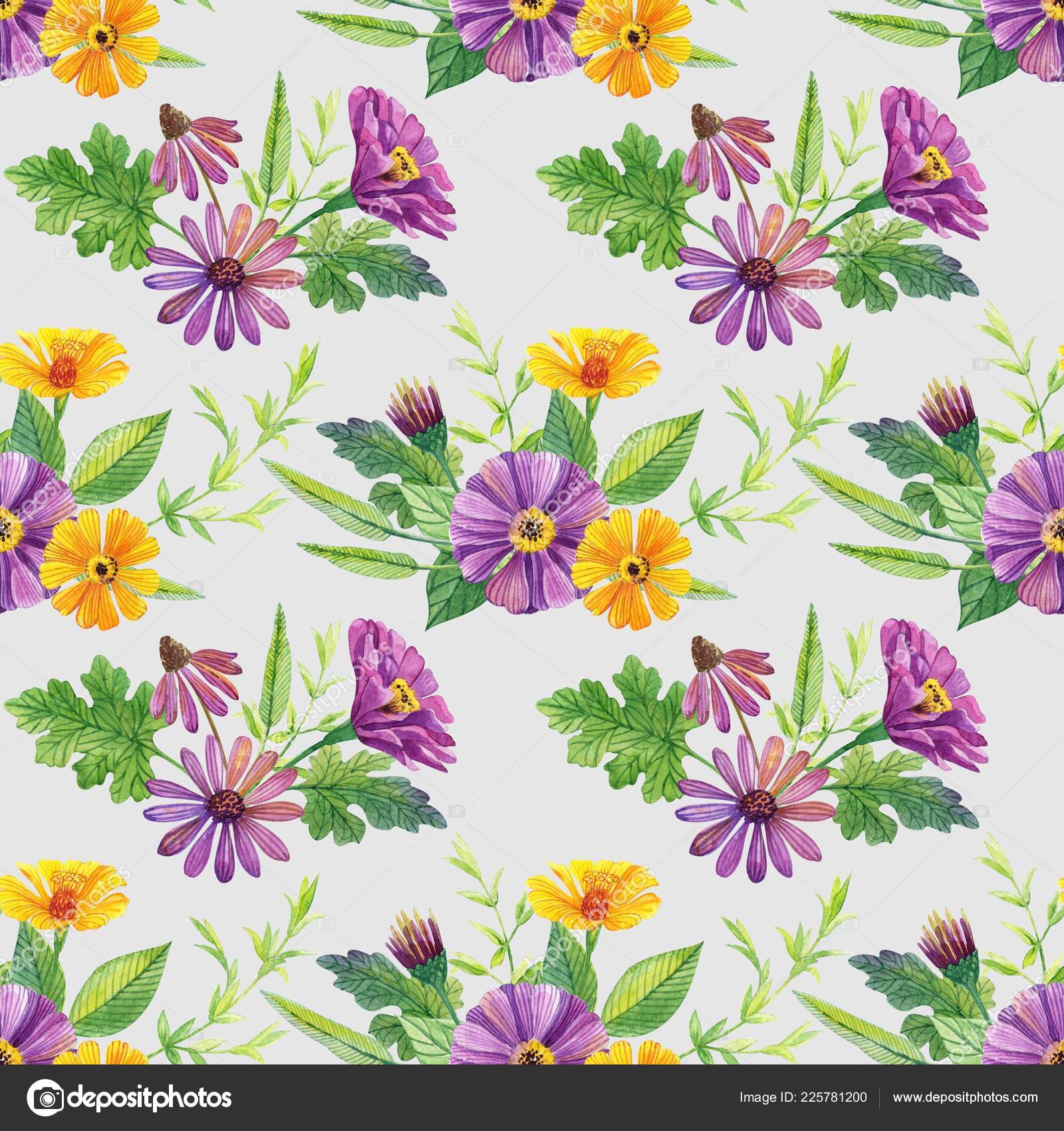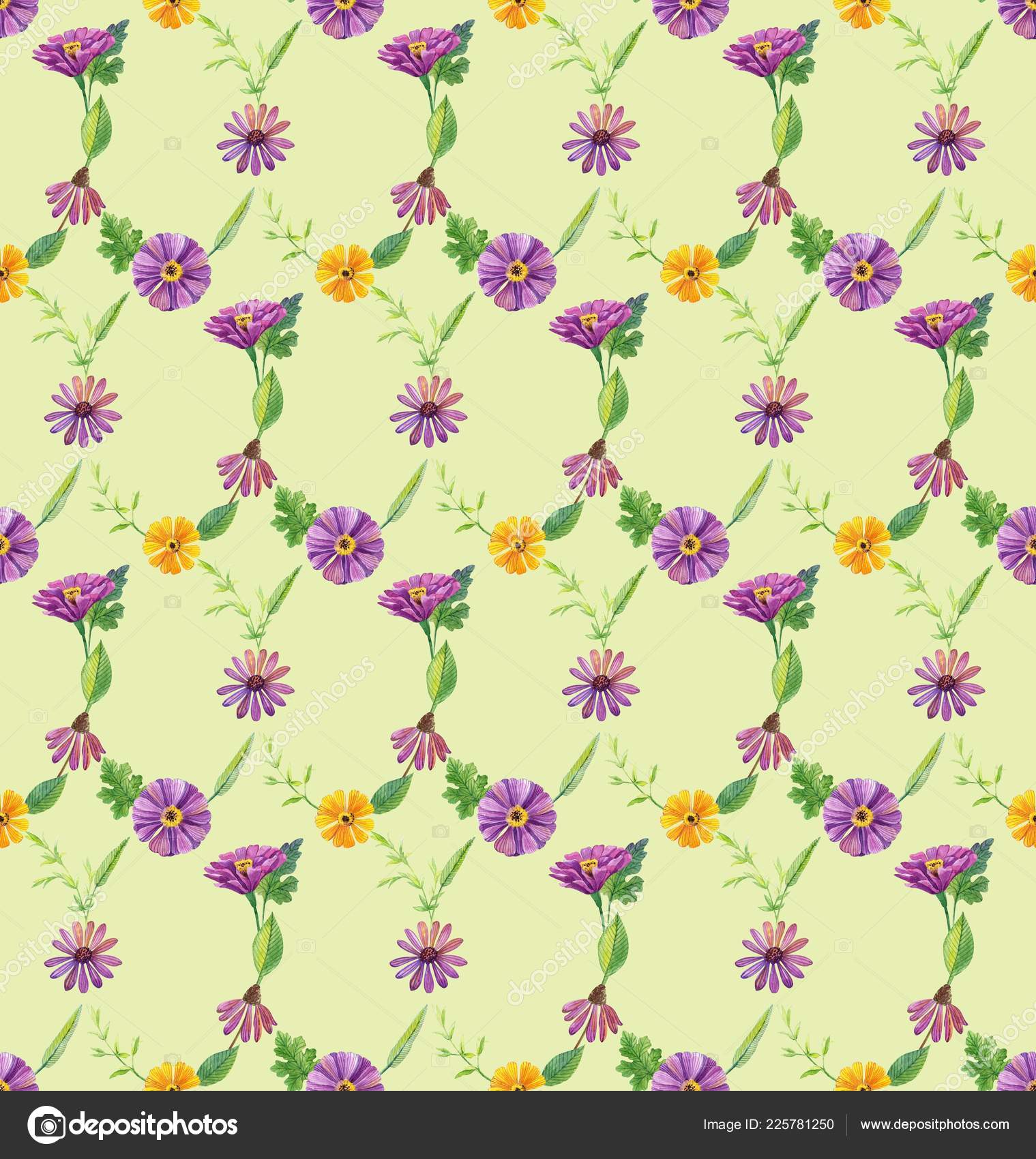 Watercolor Floral Seamless Pattern With Yellow Flowers Can Be