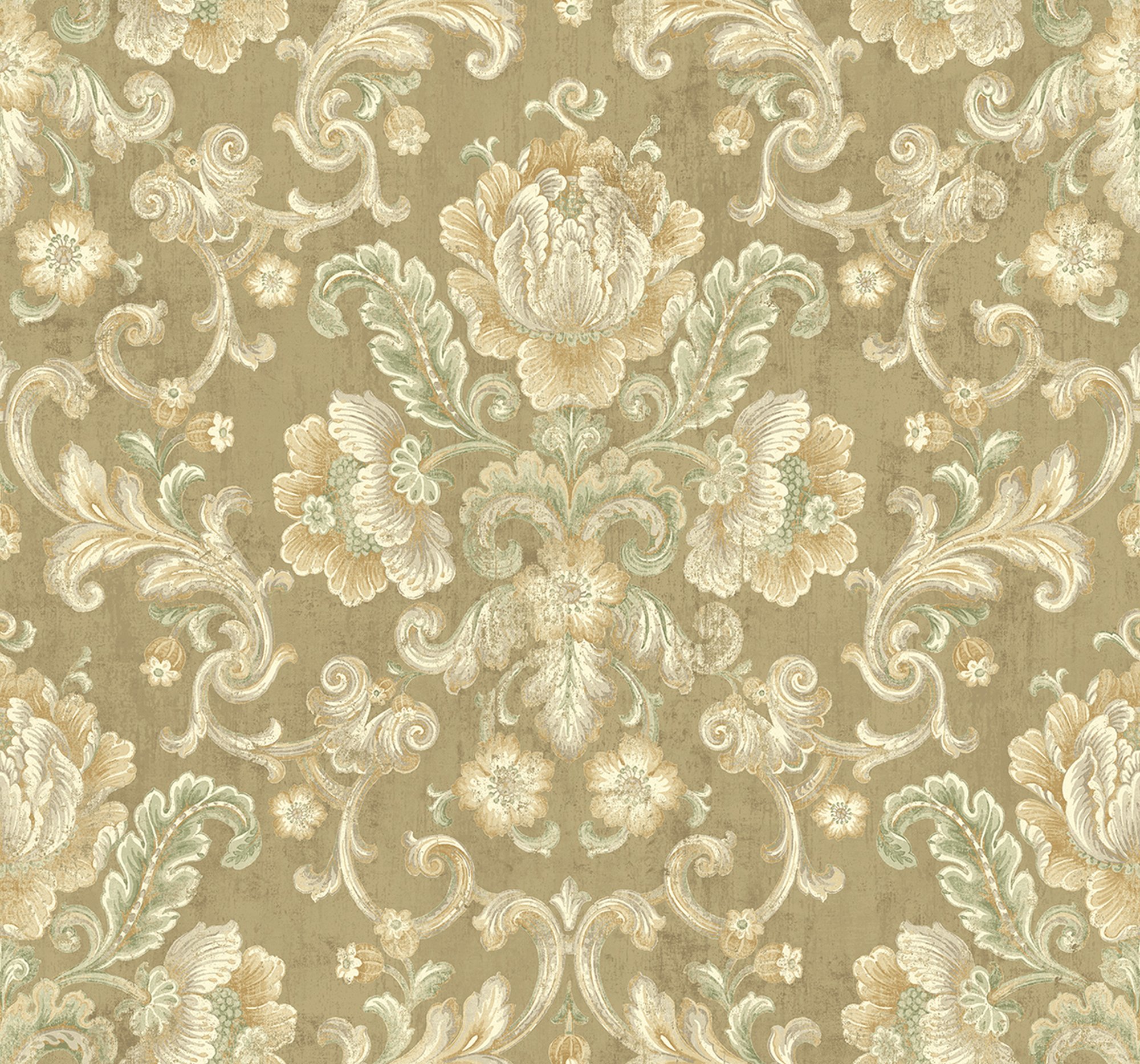 Blooming Jacobean Antique Gold Wallpaper Rn70907 By Wallquest