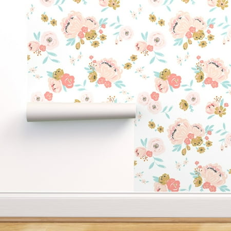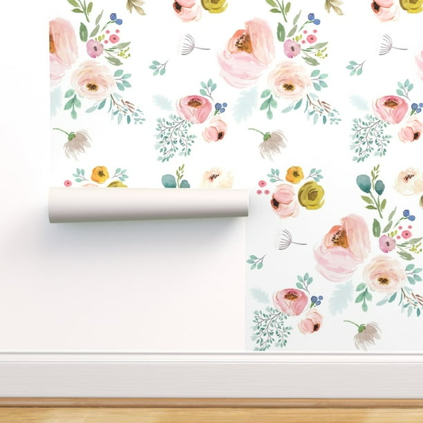 Peel And Stick Removable Wallpaper Blush Pink Bouquets Girls