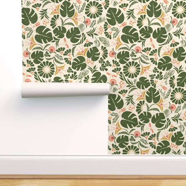 Peel And Stick Removable Wallpaper Jungle Tropical Paradise Leaves