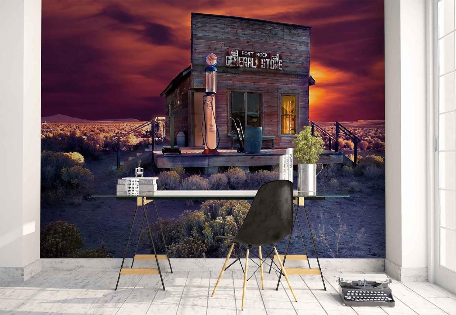 Photo Wallpaper Wall Mural Wasteland Bar Store Sunset Theme