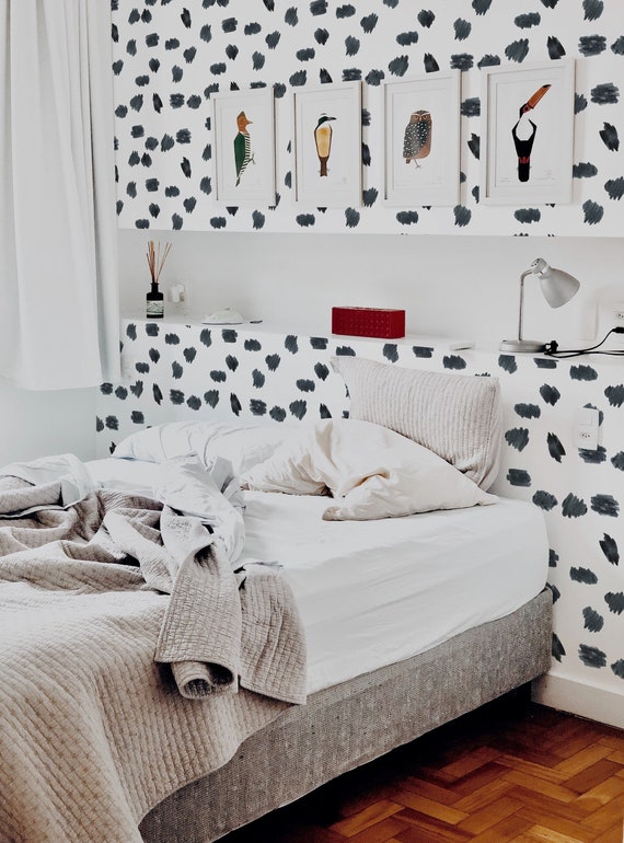 Black Watercolor Removable Wallpaper Design Black Brush Etsy