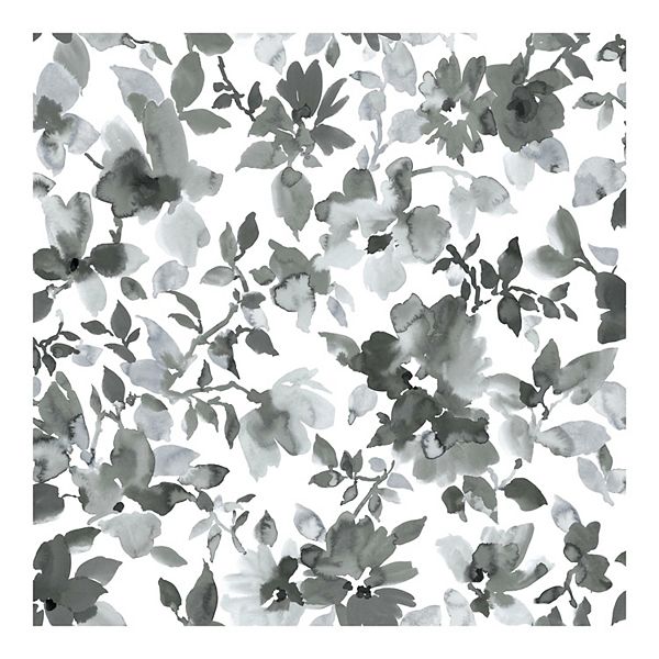 Roommates Black Watercolor Floral Peel And Stick Wallpaper