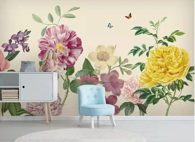 Custom Wallpaper Mural Home Improvements Flower Watercolor