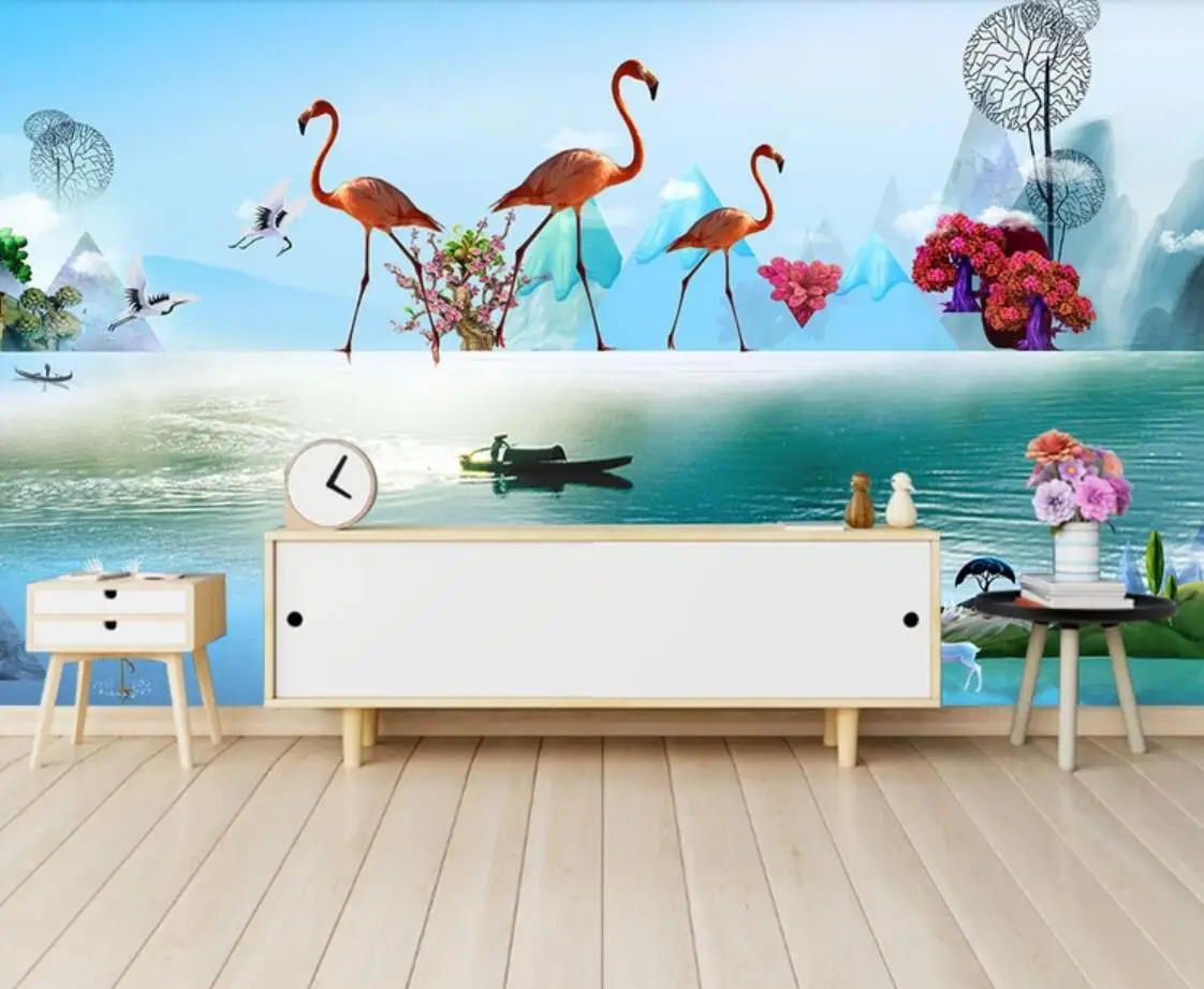Nordic Hand Painted Flamingo Wall Mural Watercolor Wallpaper