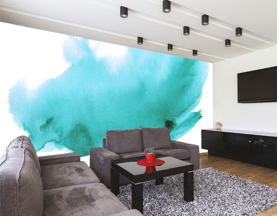 Turquoise Watercolor Wallpaper Mural Murals Wallpaper