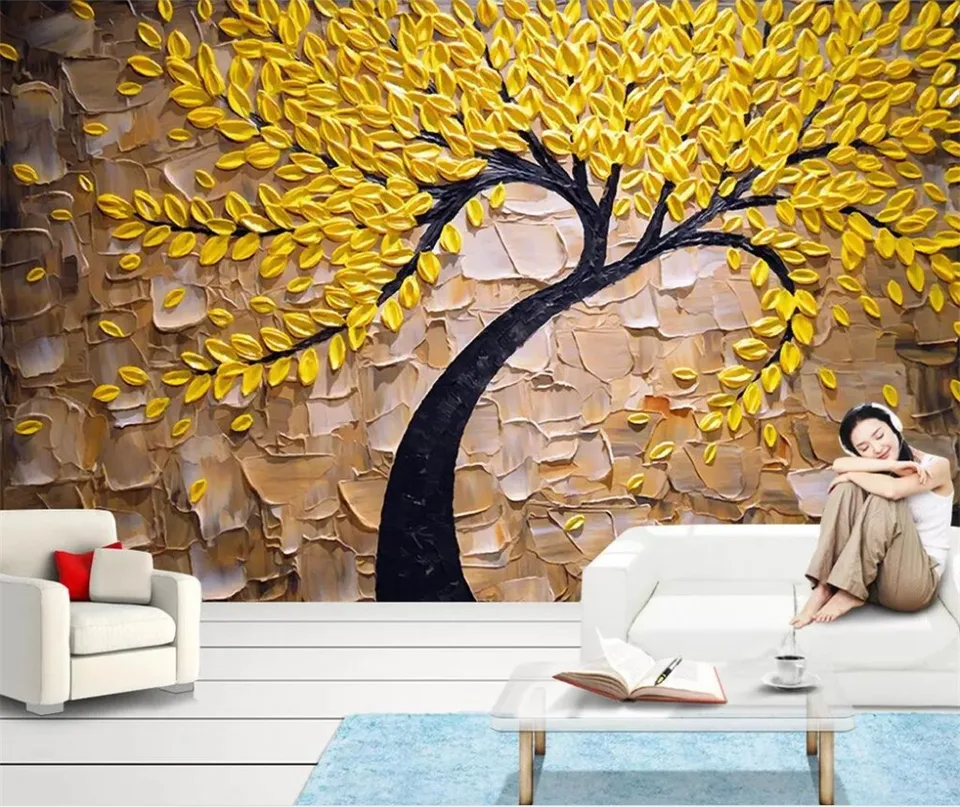 Beibehang Custom Wallpaper 3d Yellow Fortune Tree Oil Painting