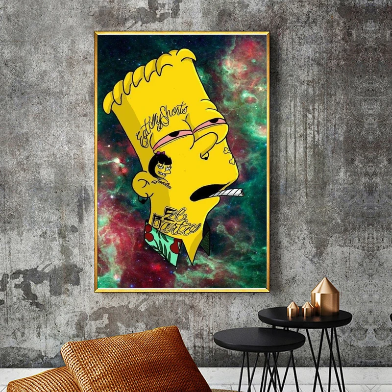 Bart Cartoon On Weed Wallpaper Canvas Painting Print Living Room