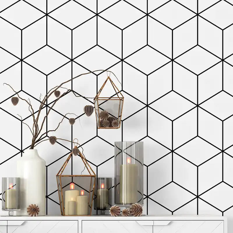 Nordic Geometric Lattic 3d Wall Papers Black Vinyl White Grid