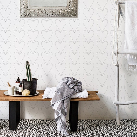 Black And White Peel And Stick Wallpaper Removable Hearts Etsy