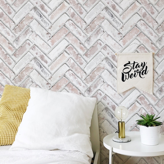 Whitewash Brick Wallpaper Removable Brick Wallpaper Roll Etsy