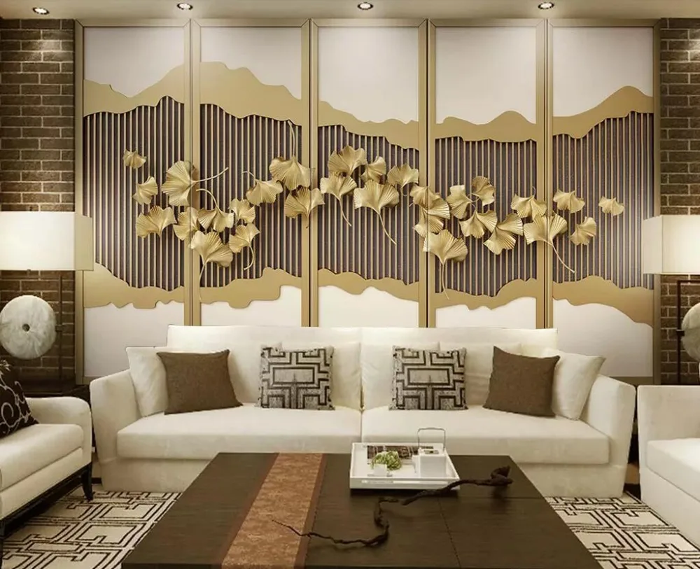 3d Stereo Ginkgo Leaves Tv Background Wall Professional Production