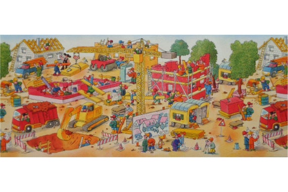 Vintage Wallpaper Border L 2 5m Construction Site Print Etsy