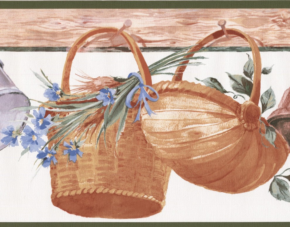 Hanging Baskets Corn Flowers Kitchen Wide Wallpaper Border Retro