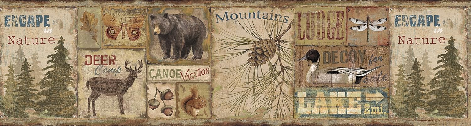 878858 Bear Deer Camp Signs Wallpaper Border Ttl01592b