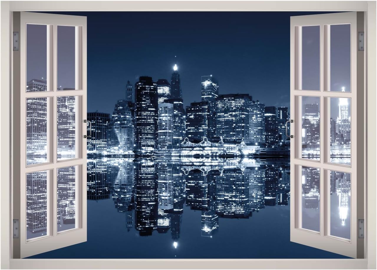 Amazon Com Manhattan City Night Lights Window 3d Wall Decal Art Removable Wallpaper Mural Sticker Vinyl Home Decor West Mountain W40 Giant 65 W X 46 H Home