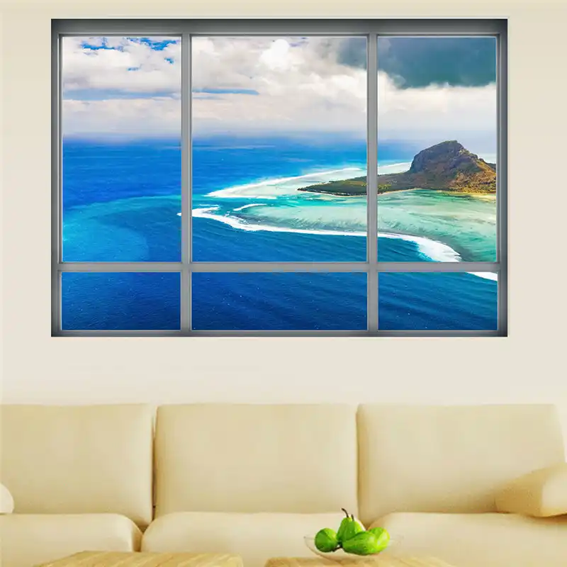 Shop Home Room Decor Fake Window Seaview Background Pvc Wall