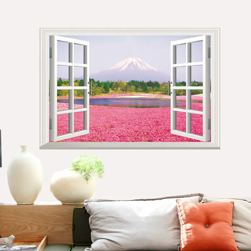 Buy New Design 3d Fake Window Wall Scenery Flower Art Wall