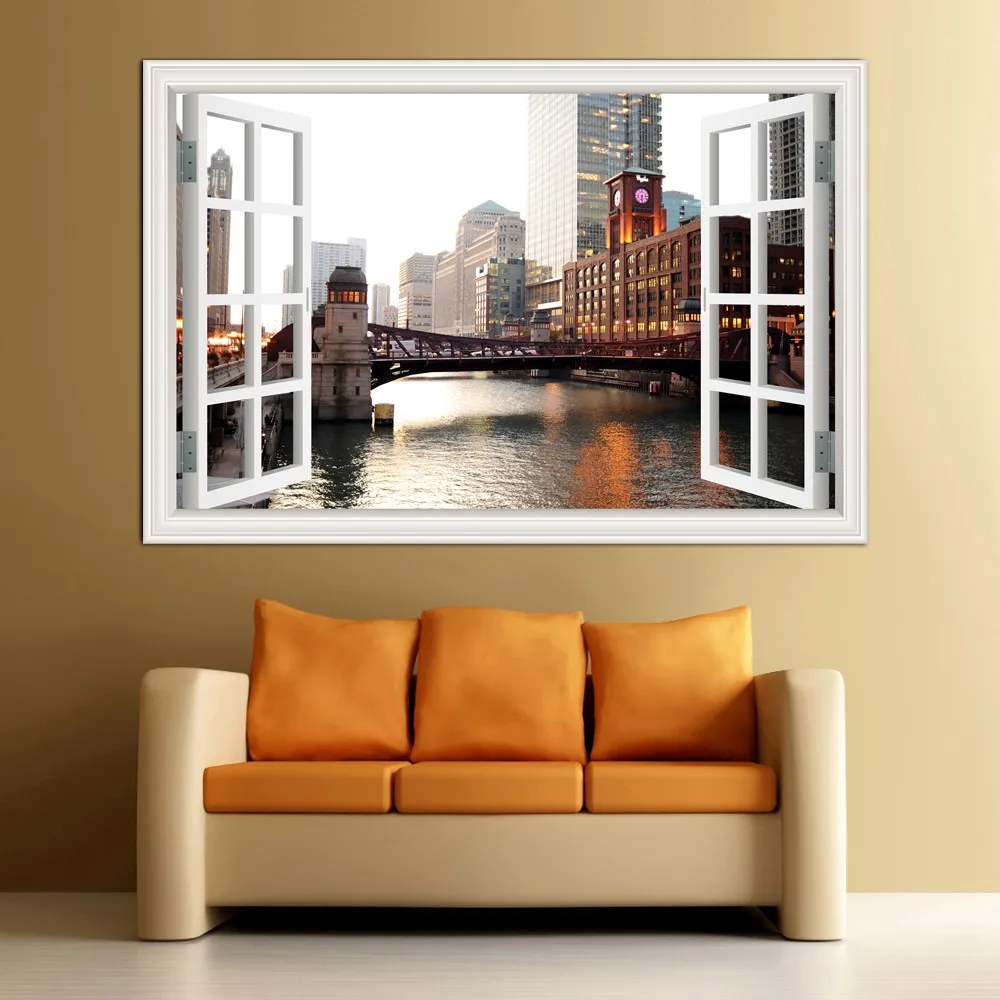 3d Wall Sticker Famous Bridge Window View Wallpaper Modern Home