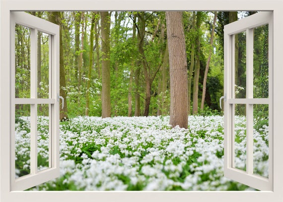 Blooming Flowers Wall Decal Forest View Wall Sticker Forest Etsy