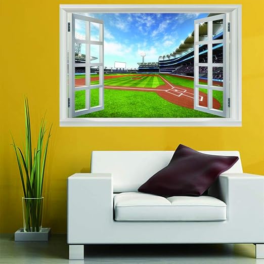 Amazon Com Airzhang 3d Fake Window Wallpaper Art Sticker Baseball