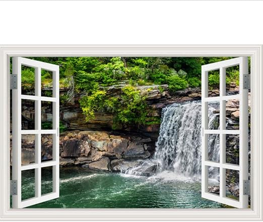 Mountain Waterfalls Cascades Nature View Window 3d Wall Decal Art